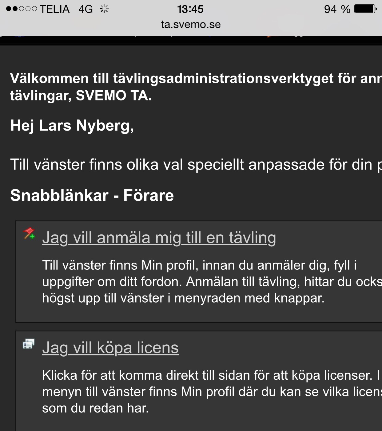 Från och med 2015 ingår jag i Sme MK som funktionärsmedlem, förarlicensen däremot är en helt annan sak.