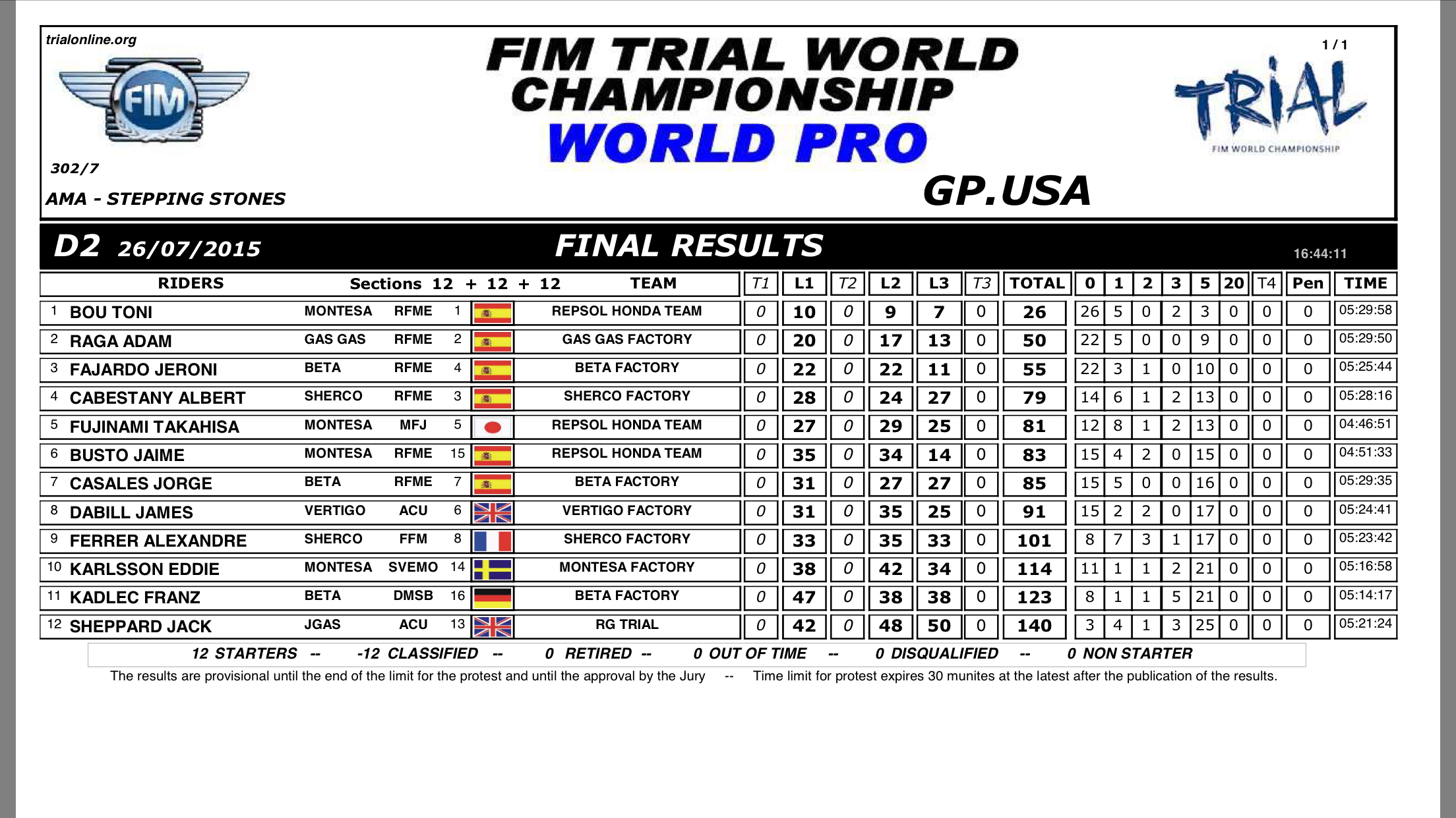 Bou överlägsen segrare även idag med Raga tvåa och Fajardo på tredjeplats. Eddie hade en bättre dag och placerade sig på tionde plats med Kadlec tätt efter.