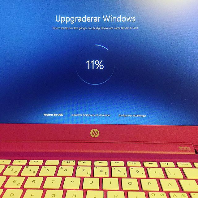 Uppgraderar nya datorn åt @theresenyberg från Win 8.1 till senaste Win 10. Det här med att det saknades nästan 10gigabyte diskutrymme för installationen gav inte #hp några stilpoäng 😡 #hpstream #staypositive #pink