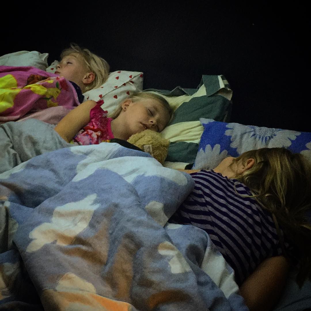 Tre toktrötta tjejer i Linus säng ikväll… 😂