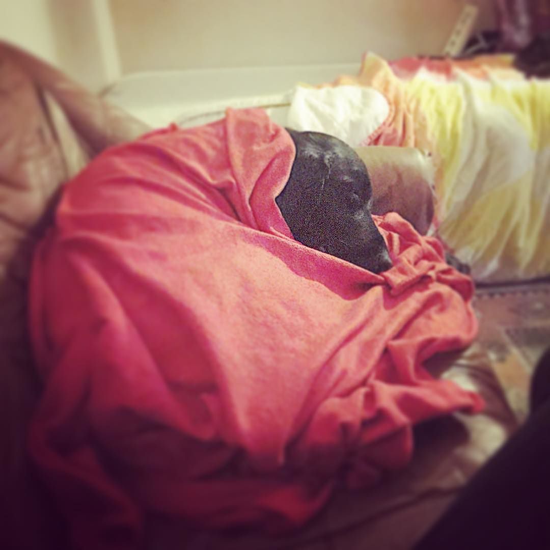 Buster har bäddat ned sig i soffan #flatcoatedretriever #dogsofinstagram #lazydog #staypositive