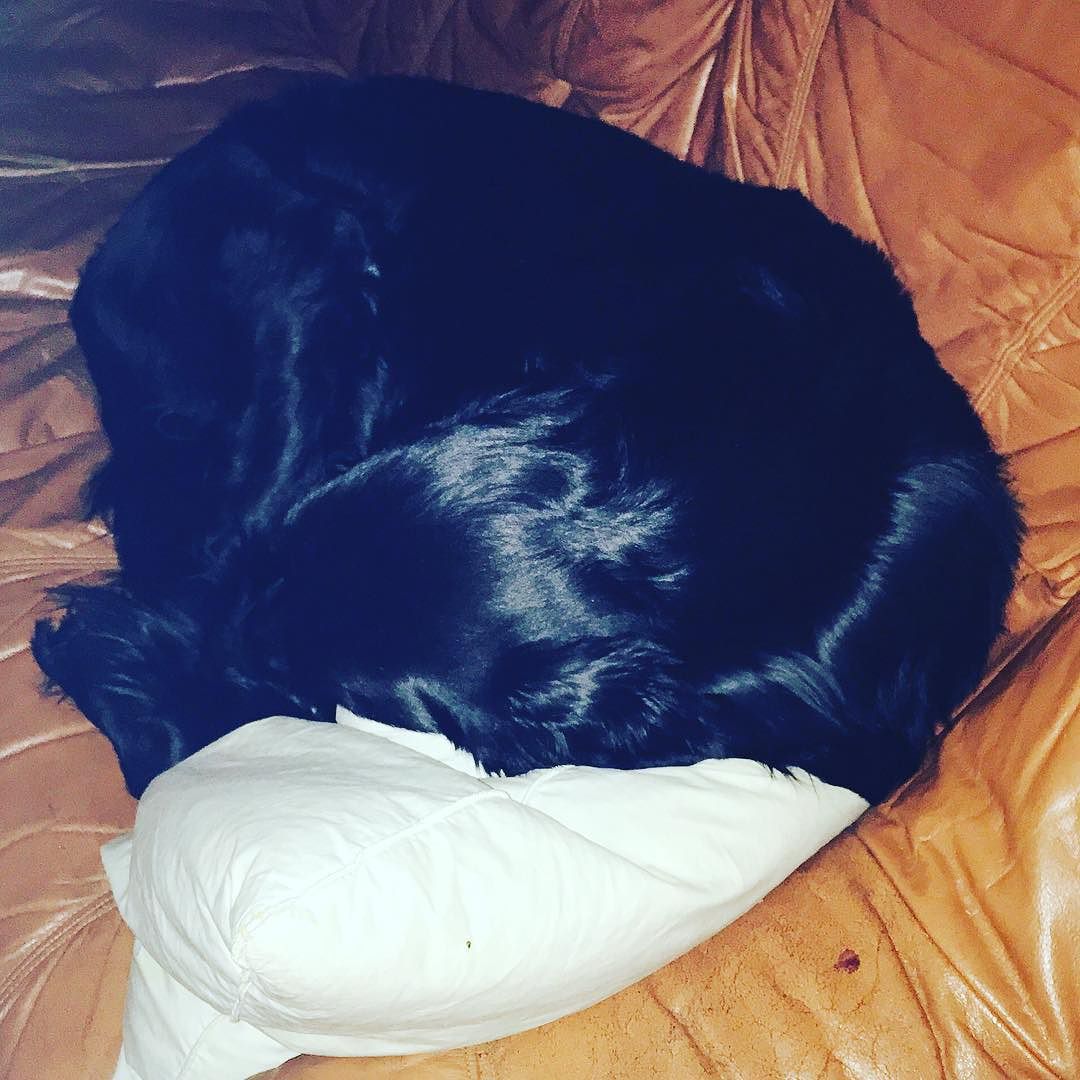 Gick ut i köket 10sekunder, blixten Buster nöp direkt min kudde 😒 #flatcoatedretriever #dogsofinstagram #staypositive