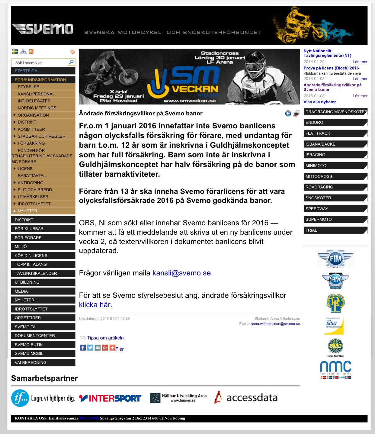 SVEMO har sedan 1/1 2016 nya ”försämrade” försäkringsvillkor i banlicensen vilket innebär att klubbar enbart anslutna till dom måste tillse att alla förare som tränar & tävlar på området innehar minimum Guldhjälmslicens.