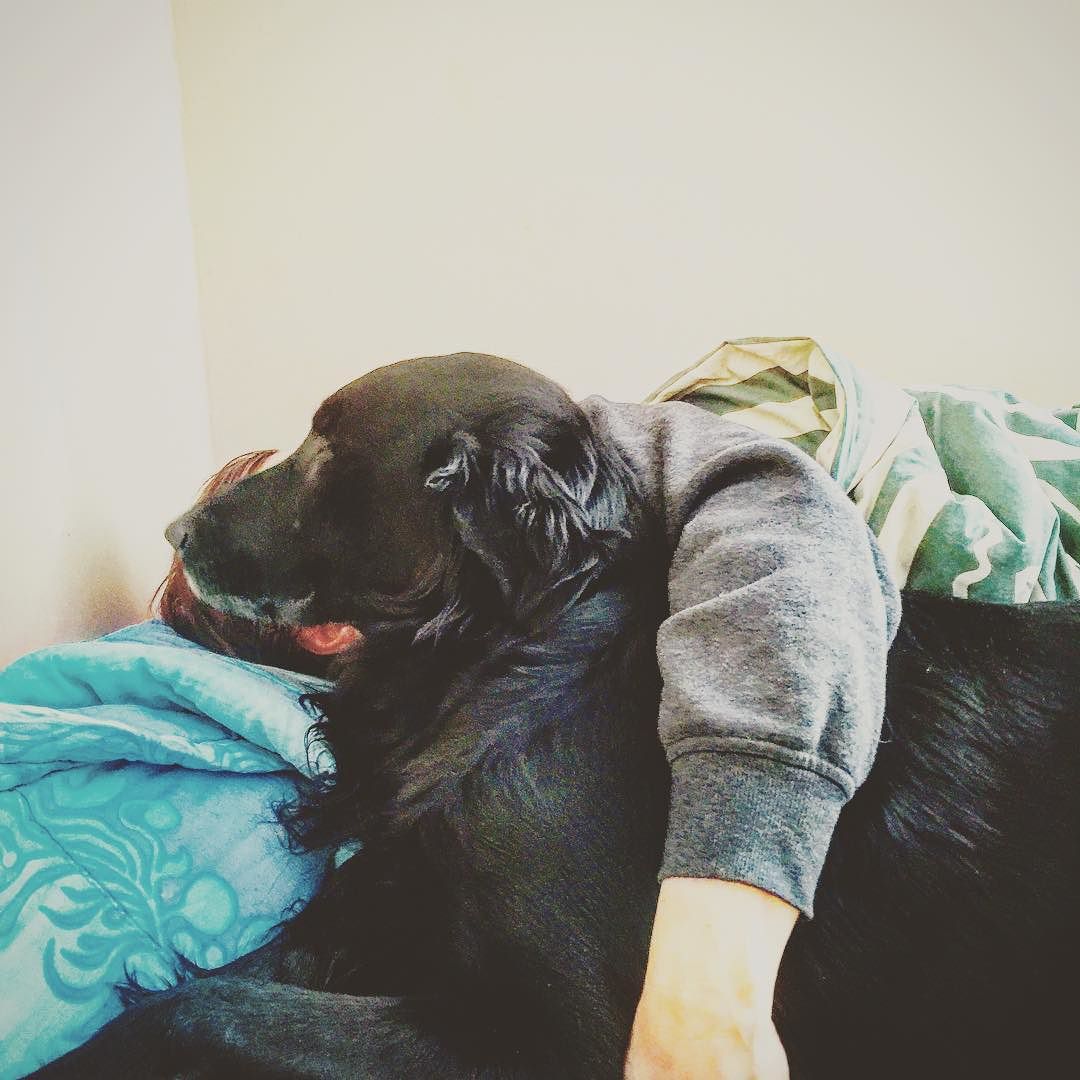 Buster är SÅ lycklig nu när han får visa sin kärlek för @kattastrofen #dogsofinstagram #flatcoatedretriever