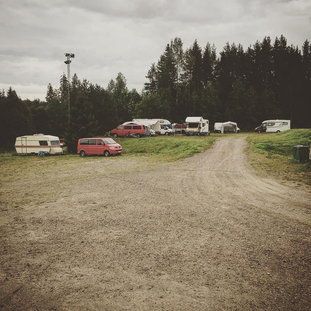 När vi äntligen är framme så upptäcker jag att regnkaoset strax efter Övik pressat in vatten i vagnen.. Vi bäddade ihop oss i andra änden och har brassat gasolvärmen rejält för att torka inredning, kläder och sängkläder.. Regnar det imorrn så avstår vi från tävlingen 😒 #staypositive #norrlandscupen #trial #svemo #camping #kabe→