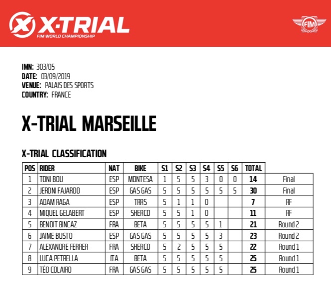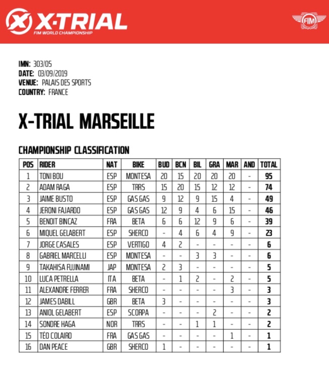 För trettonde gången vinner Toni Bou VM titeln i X-Trial när deltävlingen i Marseille genomfördes. https://www.x-trial.com/en/news/bou-wins-and-is-crowned-in-marseille