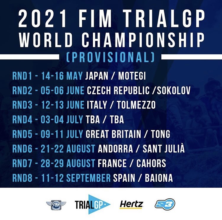 Med en kalender som ännu inte är helt bekräftad kommer de bästa trialförarna i världen att tävla över två kontinenter och minst sju olika länder i ett schema som går från maj till september. Mästerskapet påbörjas med två dagar på den världsberömda Twin Ring Motegi-banan 14-16 maj. Förutom 2020, har det japanska Trial VM:et arrangerats varje år sedan 2000.