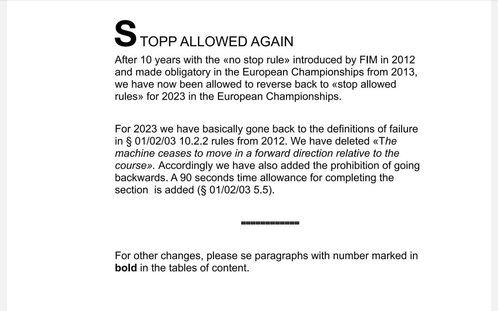 FIM Europé Trial Commission har nu gått ut med texten ”Stopp allowed again” vilket har uppmärksammats positivt bland förare runt om i Europa.